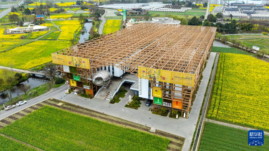 这是3月13日在四川省成都彭州市拍摄的中国蔬菜博览馆(无人机照片)。这里的“种子银行”存放了200余种蔬菜种子。