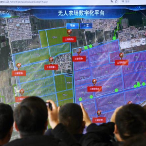 3月13日,在青岛西海岸新区绿色增粮先行示范区“无人农场”数字化平台监控室内,农技人员通过大屏幕远程对田间虫情、病情、墒情等信息实时监测。