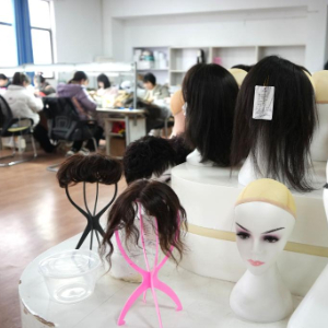3月13日,在鄄城县一家假发生产企业,工作人员在生产假发产品。