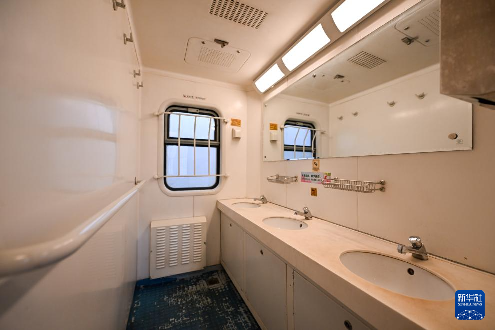 3月15日在“京铁乐游”号银发旅游列车上拍摄的经适老化改造后的洗手间。
