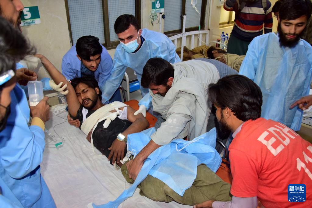 巴基斯坦客运列车遇袭事件中的伤者接受救治