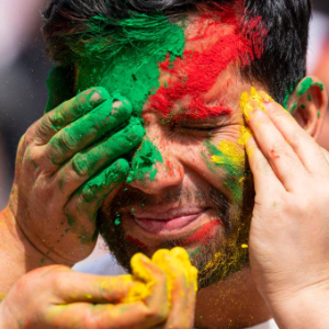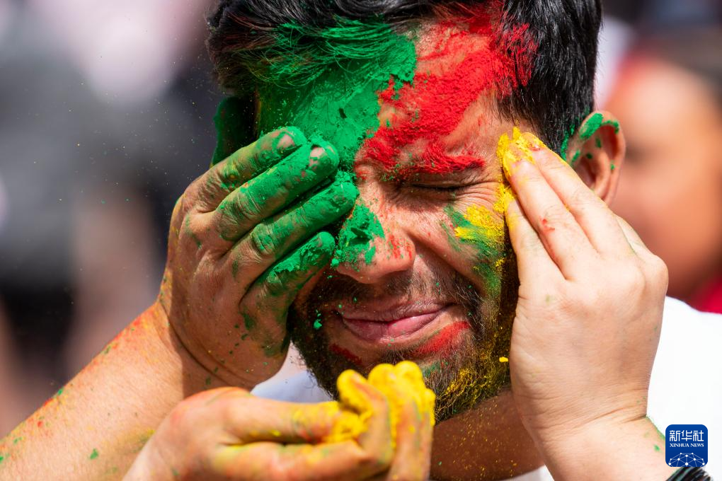 洒红节也叫胡里节,人们在节日期间互相涂抹颜料,迎接春天的到来。