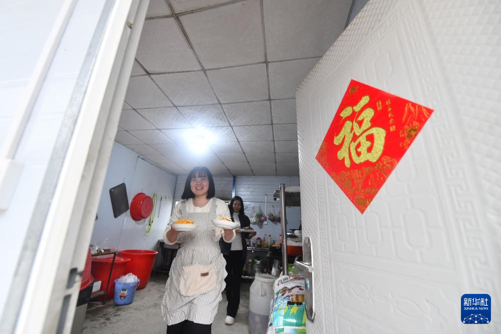 柳州市柳江区三都镇鱼宜高速公路建设工地,中铁二十局的工人和家属在准备晚饭(1月22日摄)。