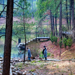 3月15日,浙江省湖州市安吉县九亩松风露营地,游客在露营地的松林间漫步休闲。