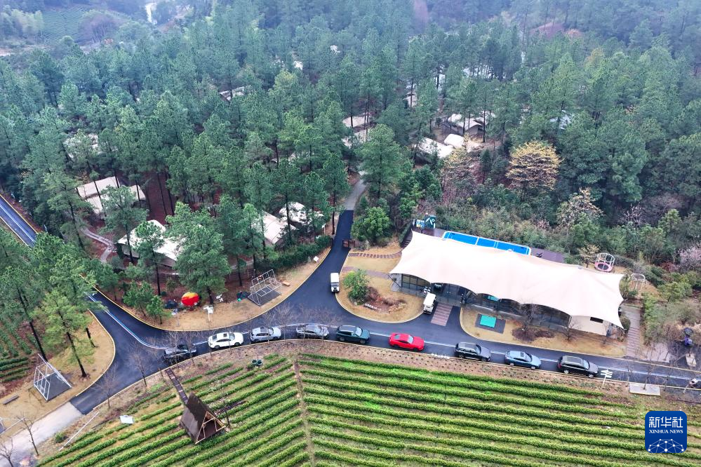 3月15日拍摄的浙江省湖州市安吉县九亩松风露营地(无人机照片)。