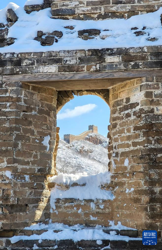 3月15日的一场春雪过后,位于河北省滦平县的金山岭长城银装素裹,美如画卷。