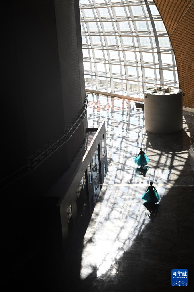 3月18日,北京海淀春之声合唱团成员在国家大剧院起舞。