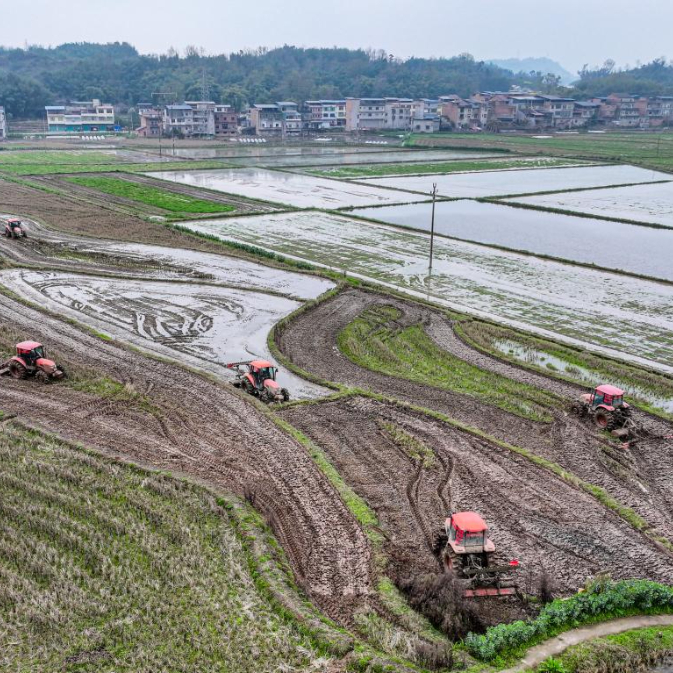近日,在“渝东粮仓”重庆市梁平区,当地农民抢抓农时进行春耕春管农业生产,田间地头一派农忙景象。