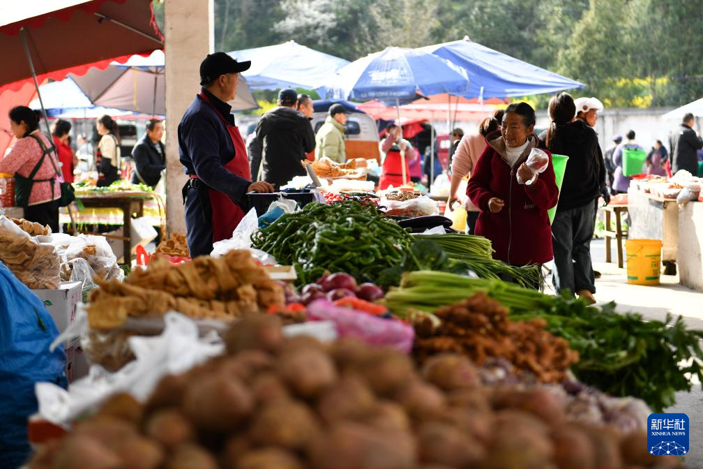 3月19日,当地居民在边城集贸大市场购买各类商品(无人机照片)。