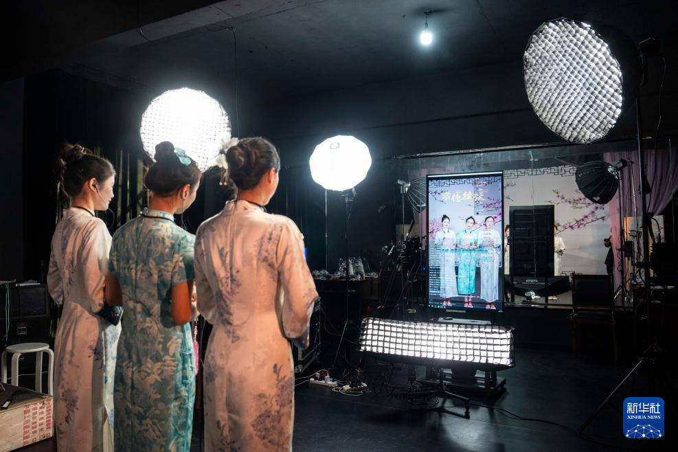 3月17日,常德丝弦艺术剧院青年演员在进行常德丝弦的推广直播。