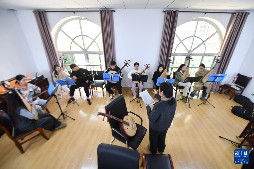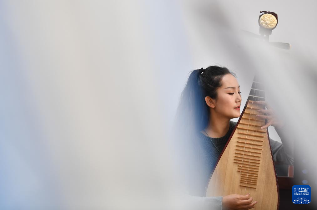 3月18日,常德丝弦艺术剧院的青年演员在练习丝弦乐器。