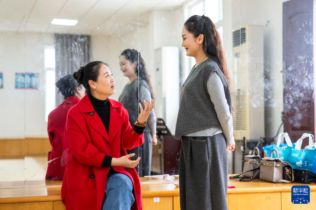 3月18日,“50后”的常德丝弦名家宋洁在常德丝弦艺术剧院指导青年演员练功。