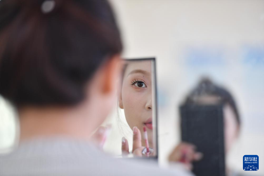 3月17日,常德丝弦艺术剧院的一名“90后”演员在演出前化妆。