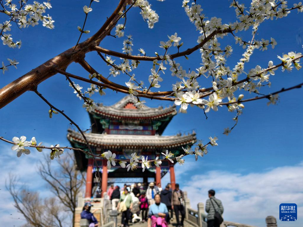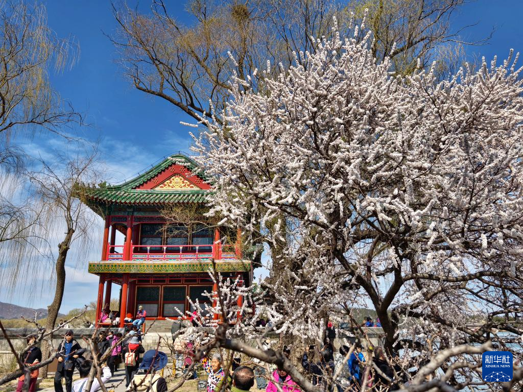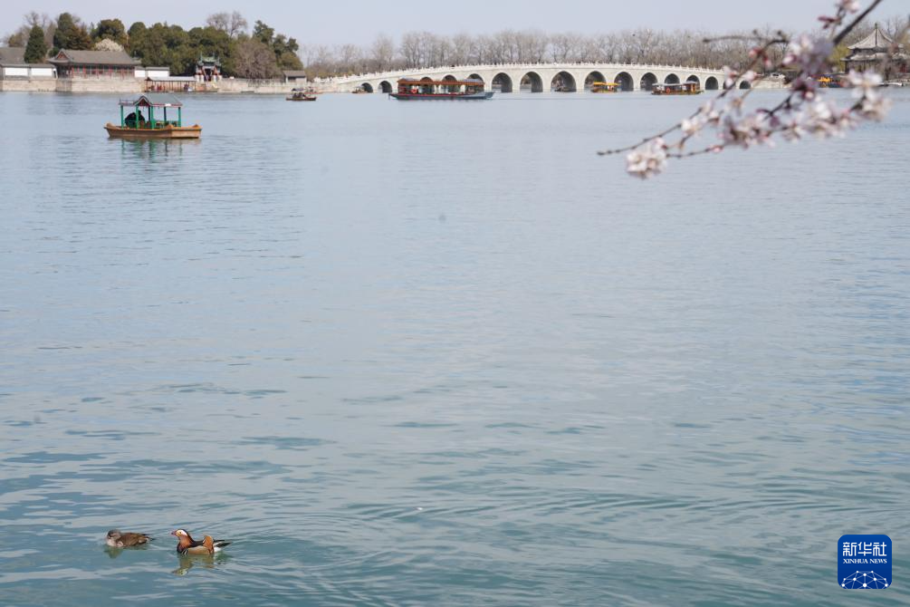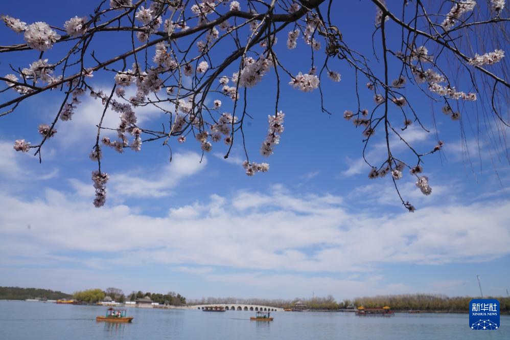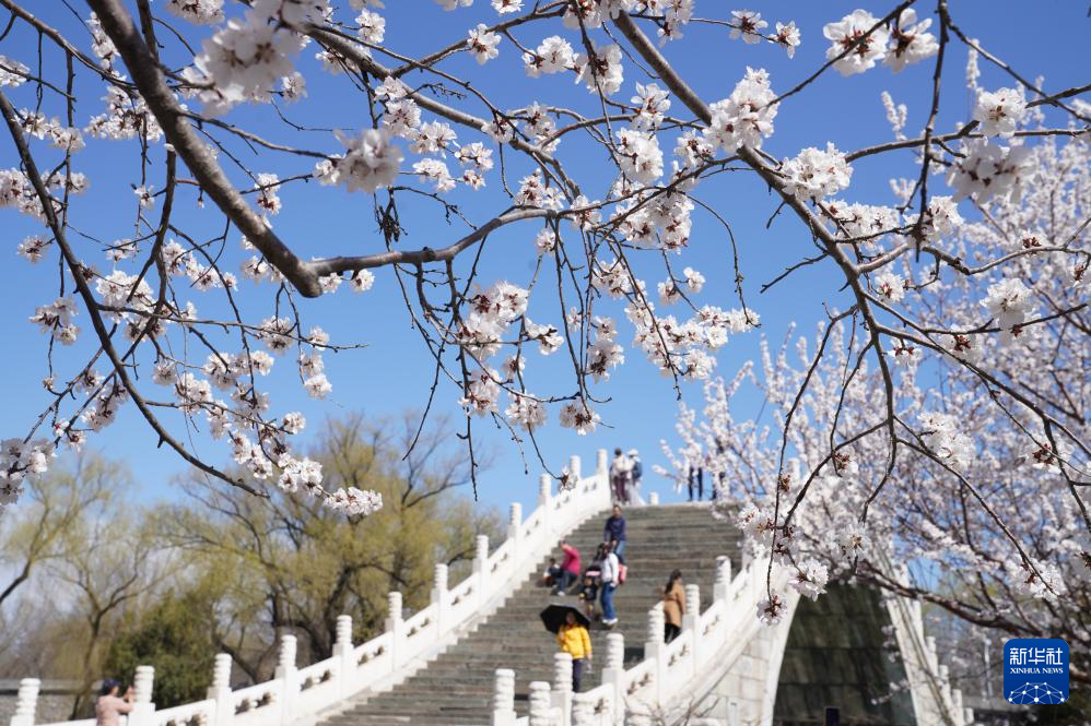 3月19日,游人在北京市颐和园赏花。