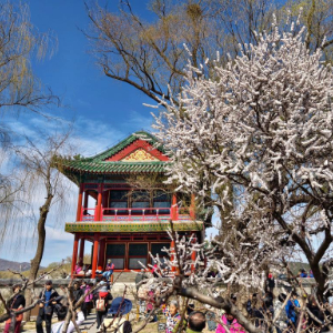 3月19日,游人在北京市颐和园赏花(手机照片)。