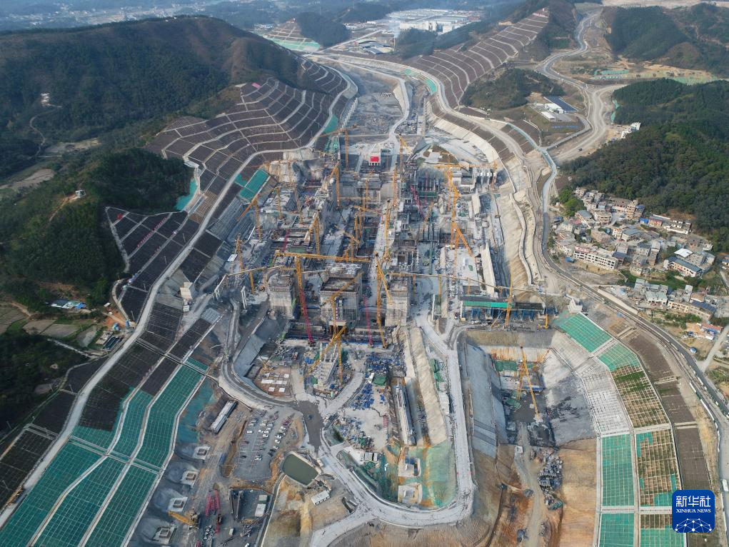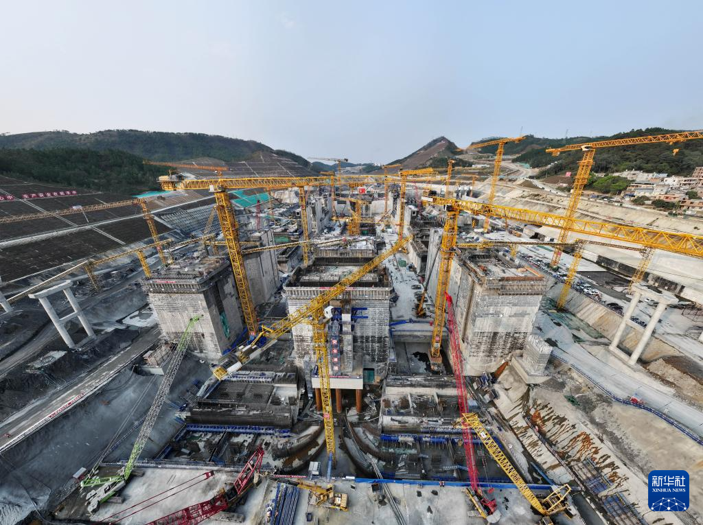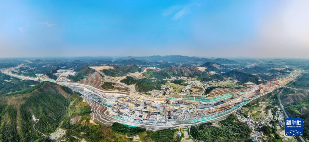 这是3月19日拍摄的广西平陆运河马道枢纽施工现场(无人机全景照片)。