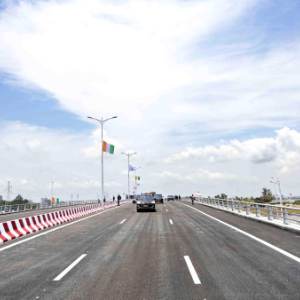 3月19日,科特迪瓦副总统科内参加阿比让港口城AKWABA转盘整治项目通车仪式。