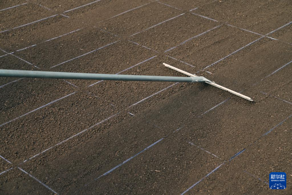 在位于双鸭山市的黑龙江北大荒农业股份有限公司友谊分公司水稻育秧大棚,工作人员在进行平整育秧底土作业(3月19日摄)。