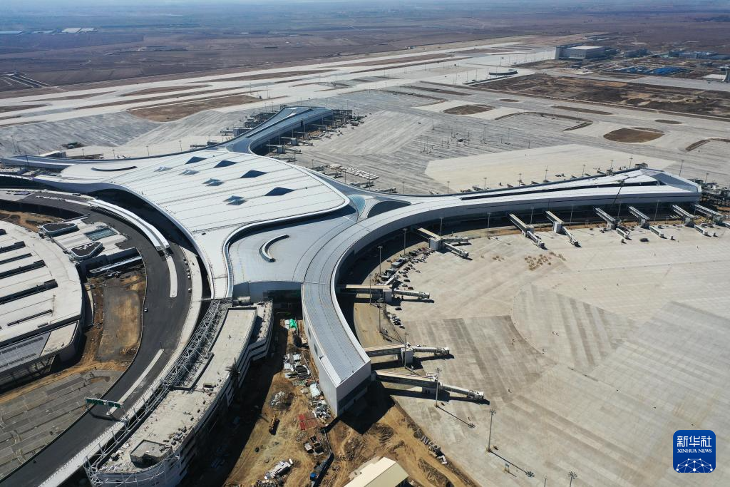 这是3月20日拍摄的呼和浩特盛乐国际机场建设现场(无人机照片)。