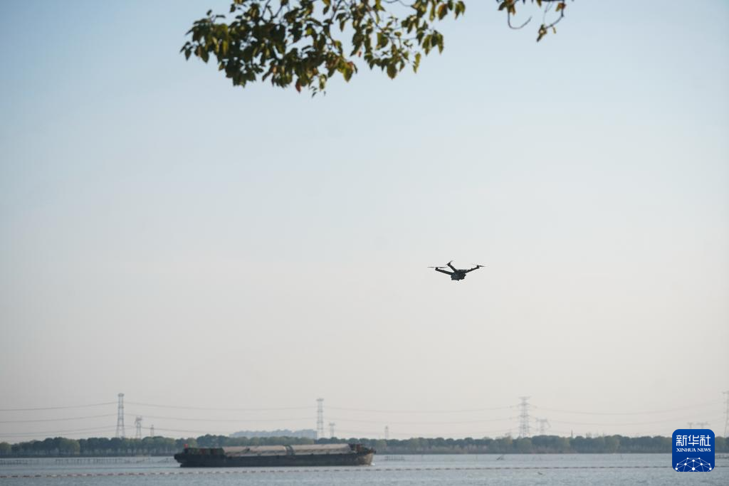 3月17日,无人机在太浦河上空巡航。吴江打造“太浦河云管家”智慧管理平台,通过无人机巡航、智慧卡口监控等,精准采集监测数据。