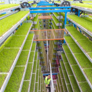 3月19日,在重庆市永川区仙龙镇双星村智能育秧基地,技术人员在育秧育苗区查看秧苗的生长情况。