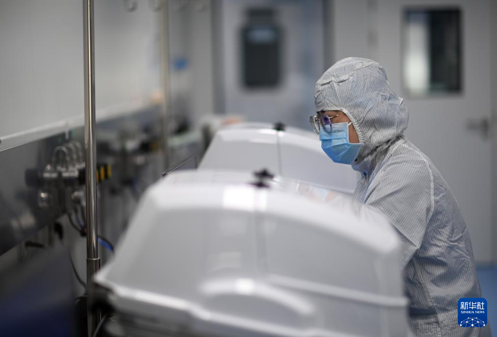 3月21日,工作人员在合源生物科技(天津)有限公司生产基地细胞培养室内工作。