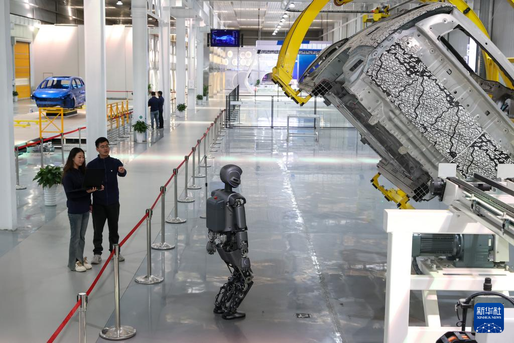 3月22日,在位于江苏无锡的天奇股份人形机器人数据采集实训基地,工程师在调试自动涂胶机器人。