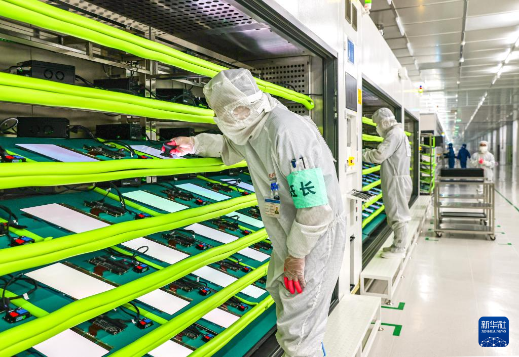 3月21日,在江苏省江都高新技术产业开发区江苏和熠光显科技有限公司,工人在无尘车间作业。