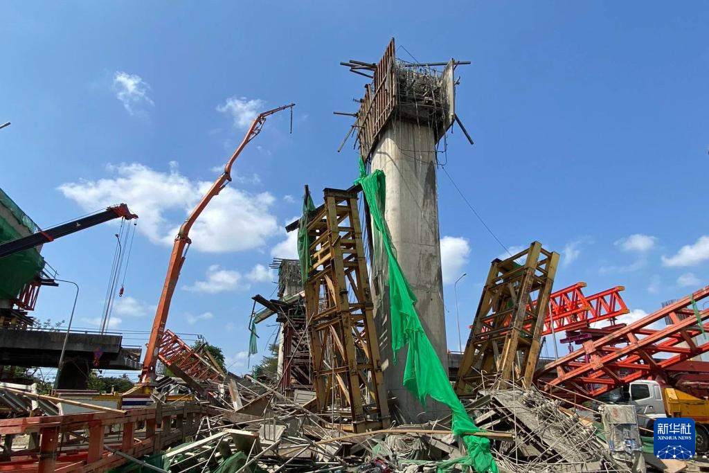 这是3月15日在泰国曼谷拍摄的高架路垮塌事故现场。