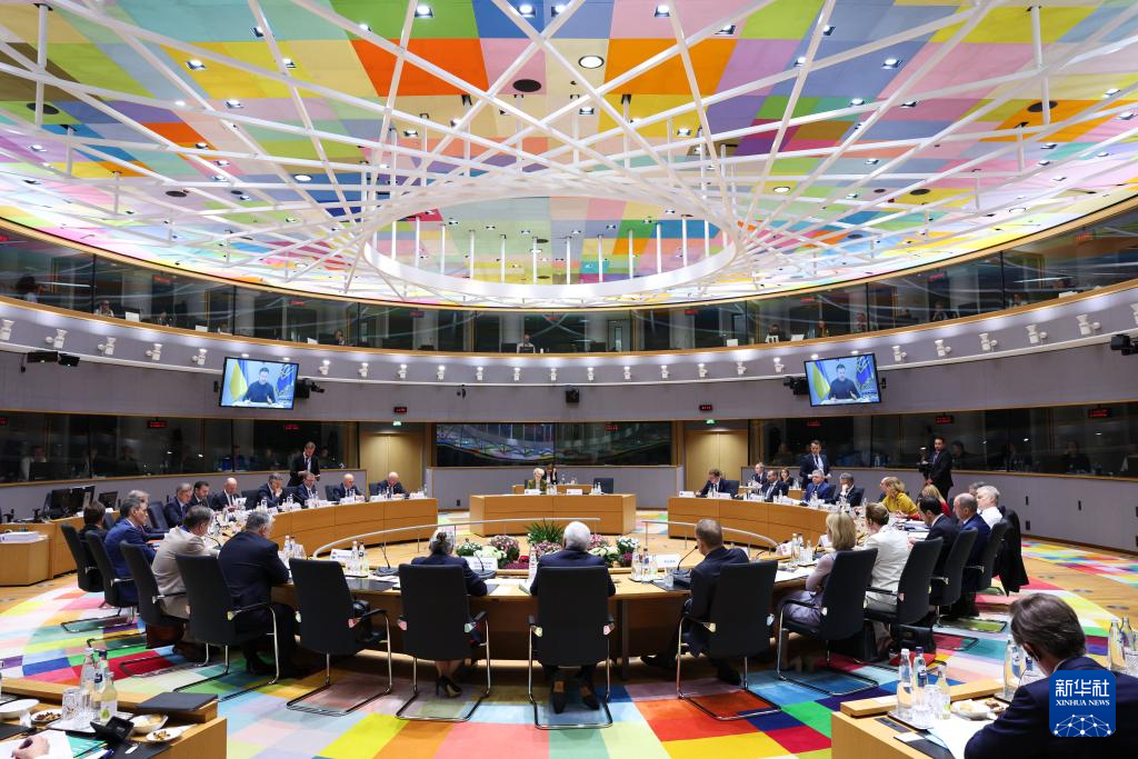 3月20日,在比利时布鲁塞尔举行的欧盟峰会上,乌克兰总统泽连斯基通过视频发表讲话。