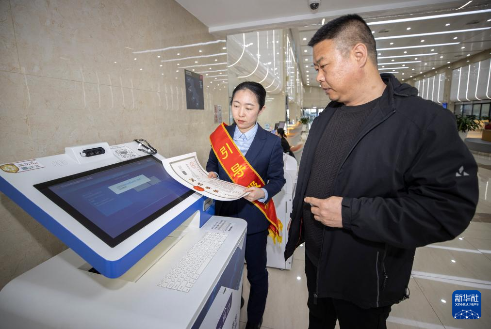 3月21日,在银川市审批服务管理局企业服务大厅,工作人员引导办事人员使用宁夏企业开办“一网通办”服务平台办理业务。
