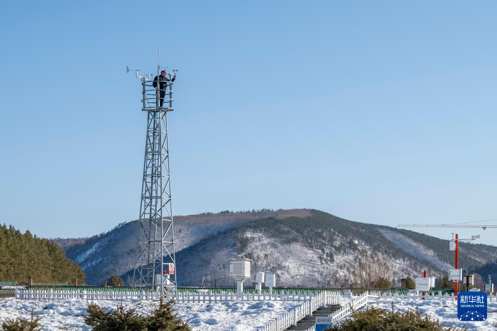 3月22日,在北极村国家基本气象站,气象测报员曲波在巡检设备。