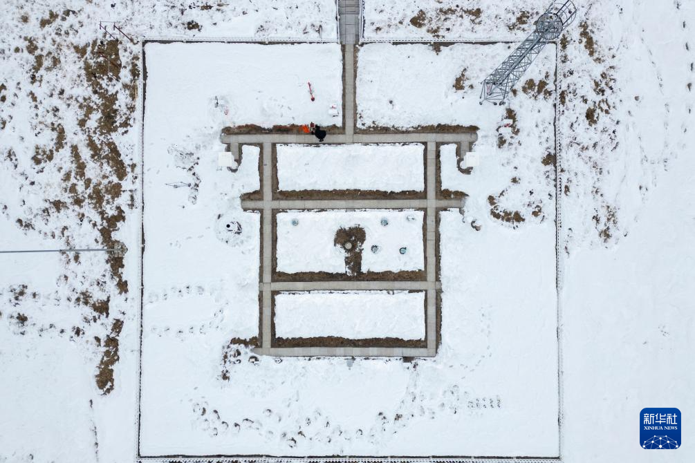 3月23日,在北极村国家基本气象站内,气象测报员王长春在巡检设备(无人机照片)。
