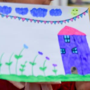 在乌鲁木齐市水磨沟区苇湖梁片区立井南社区,小朋友在公益美术课上学习绘画(3月22日摄)。