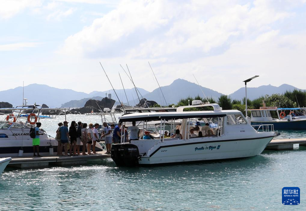 3月15日,游客在塞舌尔拉迪格岛排队登游艇。