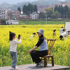 近期,浙江省建德市更楼街道城南城市田园的油菜花竞相开放,一场春日花田市集也在花田边开启,游客们支起帐篷天幕在田间赏花海、品美食,尽享春光。
