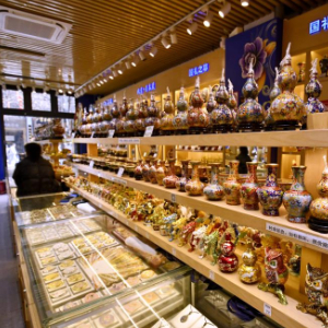 3月25日,前门大街景泰蓝展销店内展示的各类景泰蓝工艺品。