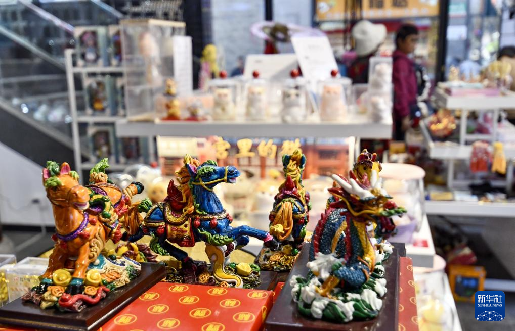 3月25日拍摄的前门大街一家文创店内展示的陶瓷工艺品。