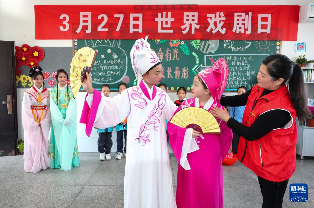 世界戏剧日临近,各地中小学展开戏剧文化进校园活动,营造浓厚的戏剧文化氛围,让学生们感受传统戏剧文化的魅力。