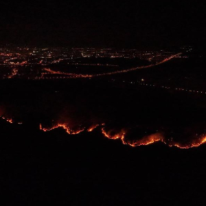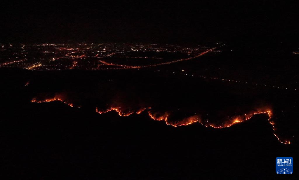 这是3月26日凌晨拍摄的安徽省庐江县东顾山林场火情(无人机照片)。