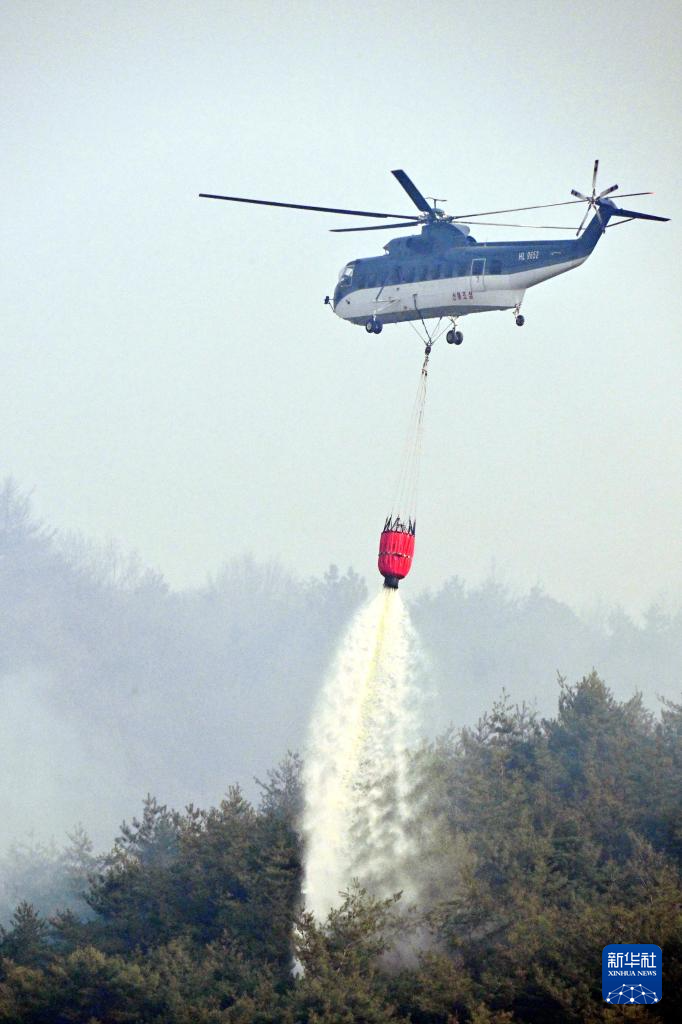3月26日,直升机在韩国庆尚南道河东郡附近灭火。
