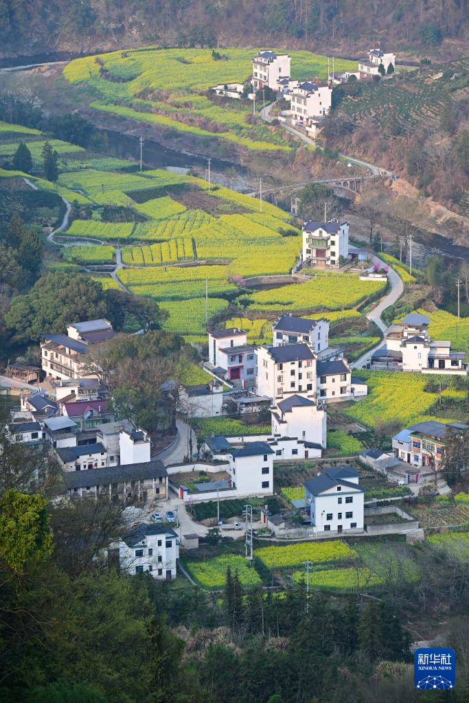 春日时节,在安徽省黄山市歙县霞坑镇石潭村,漫山遍野的油菜花和桃花等肆意绽放,和山川、民居相映成趣,浓浓春意吸引众多游客前来春游赏花。