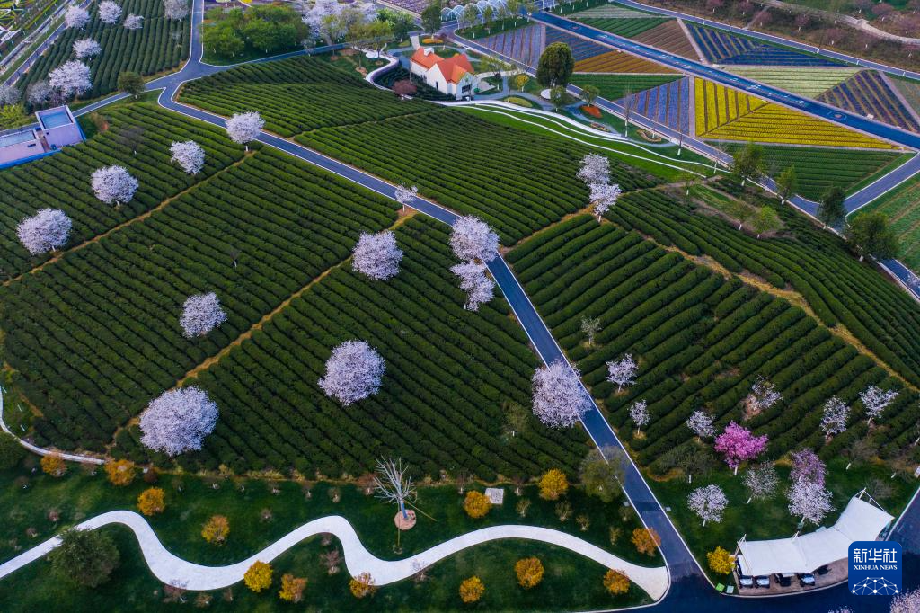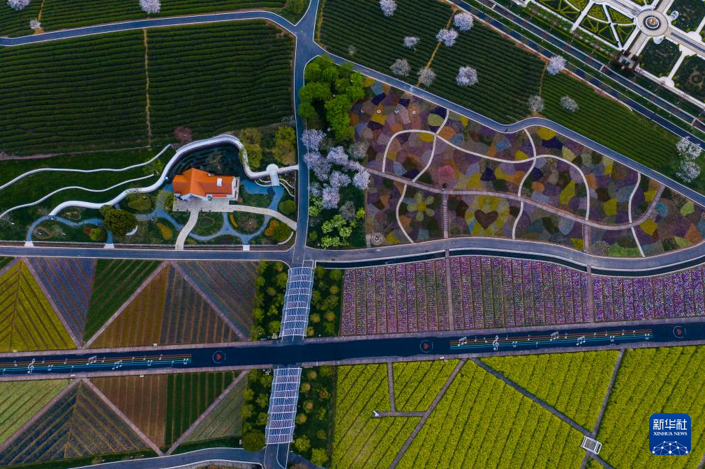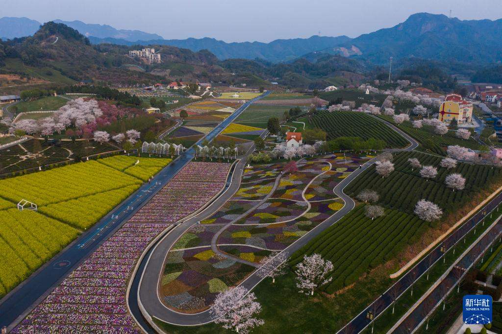 空中俯瞰花田美地景区(无人机照片,3月26日摄)。