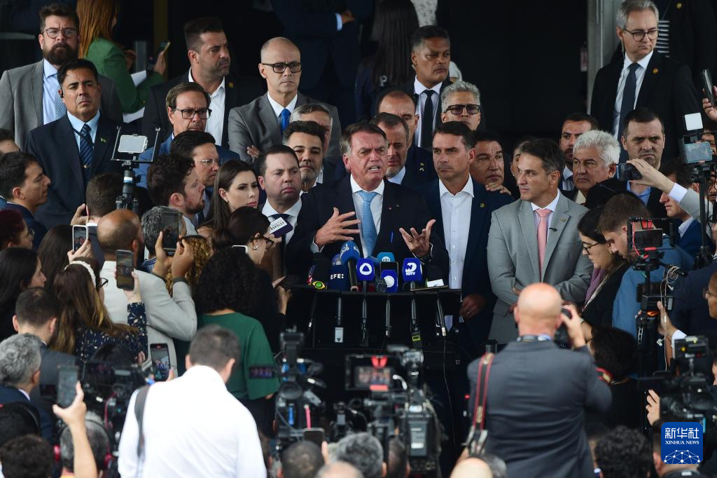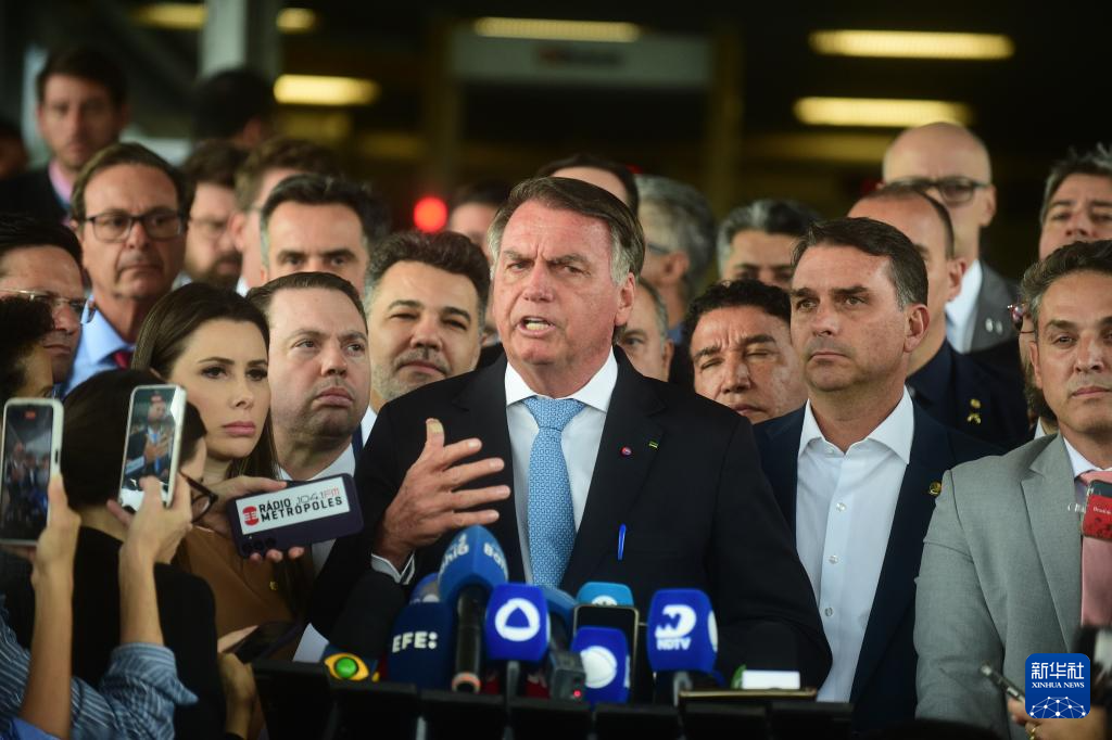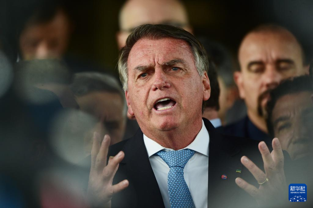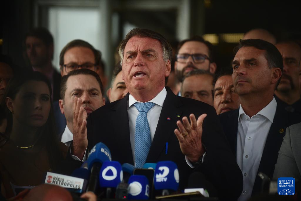 3月26日,在巴西首都巴西利亚,前总统博索纳罗在参议院向媒体讲话。