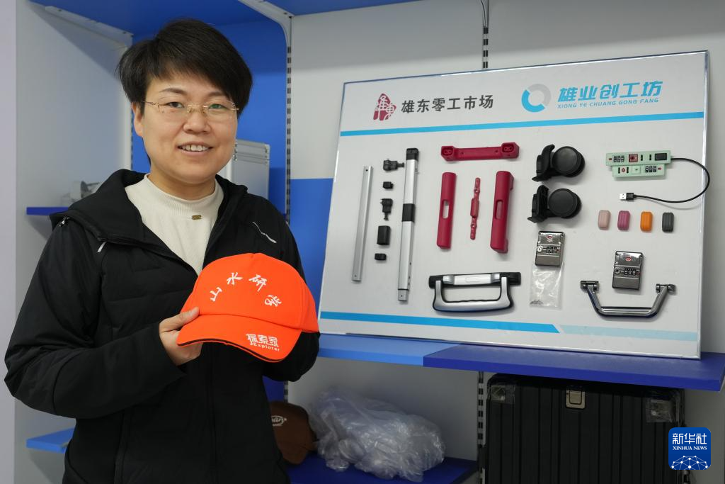 3月27日,“雄业创工坊”负责人王桃烨展示工坊里加工的各种产品和配件。