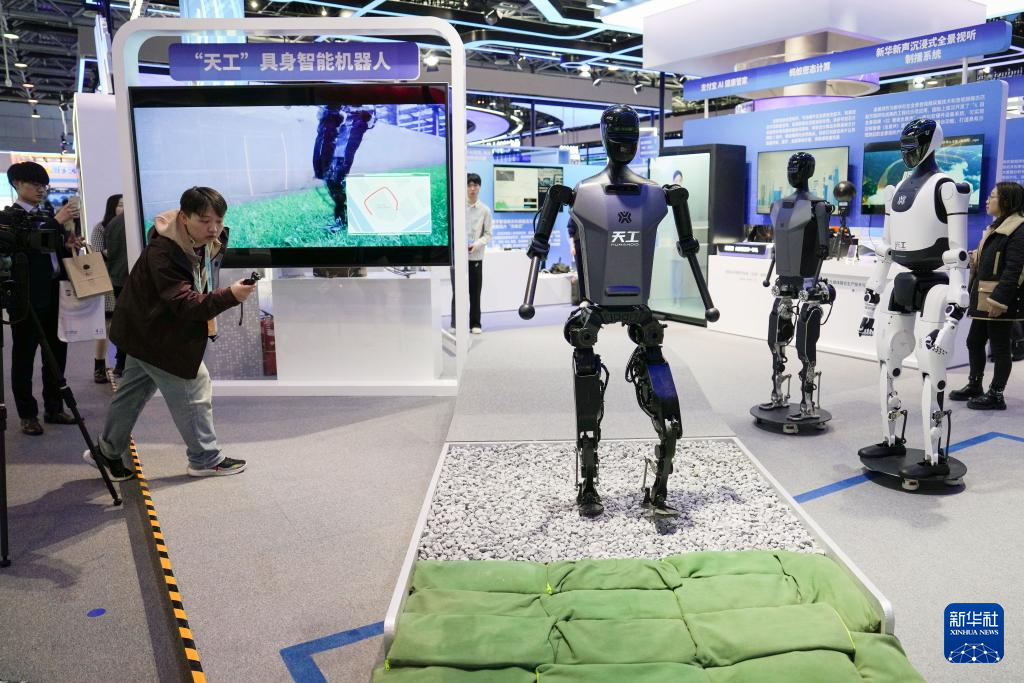 这是3月27日在2025中关村论坛年会的中关村展示中心常设展内拍摄的人形机器人“天工”。