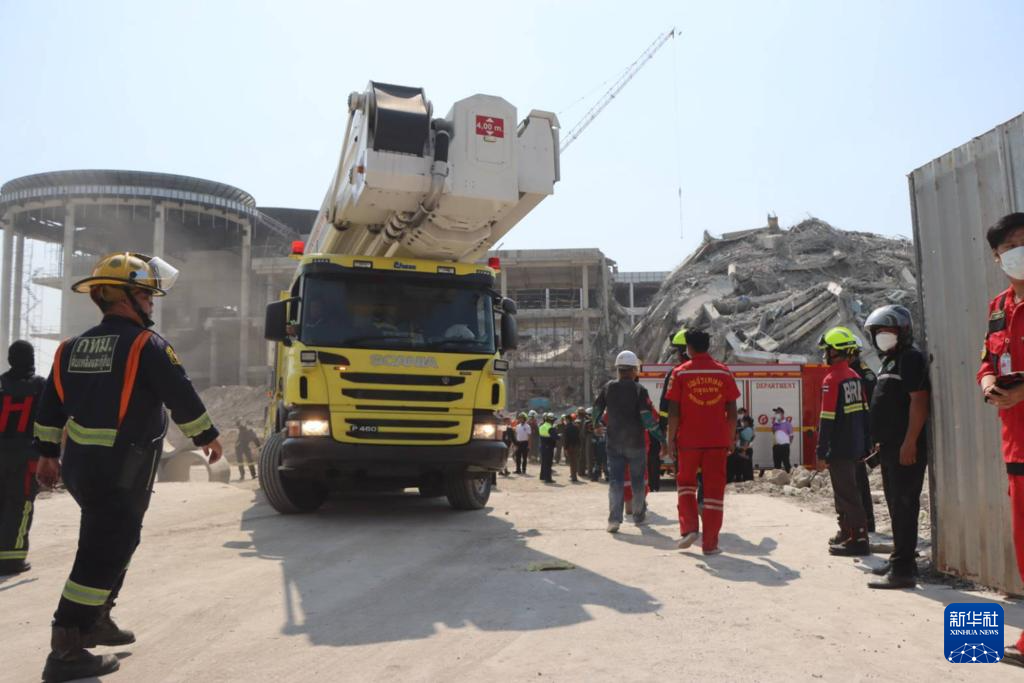 这是3月28日在泰国曼谷拍摄的倒塌的建筑(手机拍摄)。