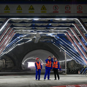 3月28日,中铁十四局建设者在隧道内进行安全巡检。