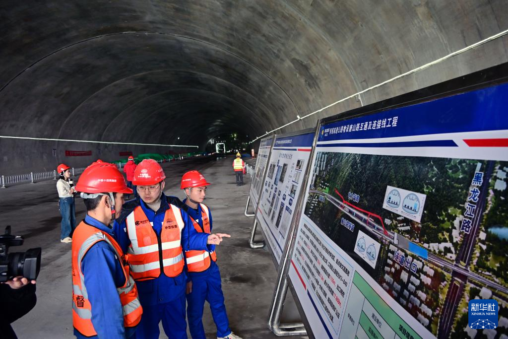 3月28日,中铁十四局建设者在介绍隧道建设情况。