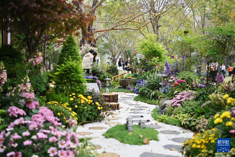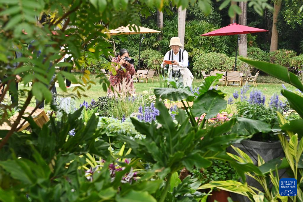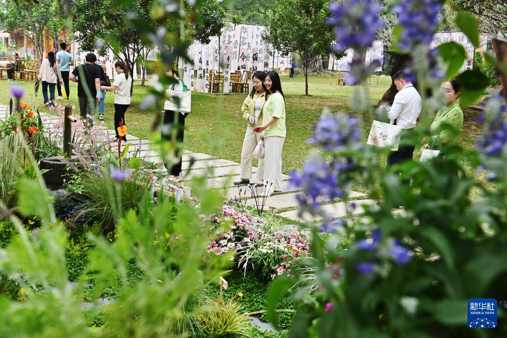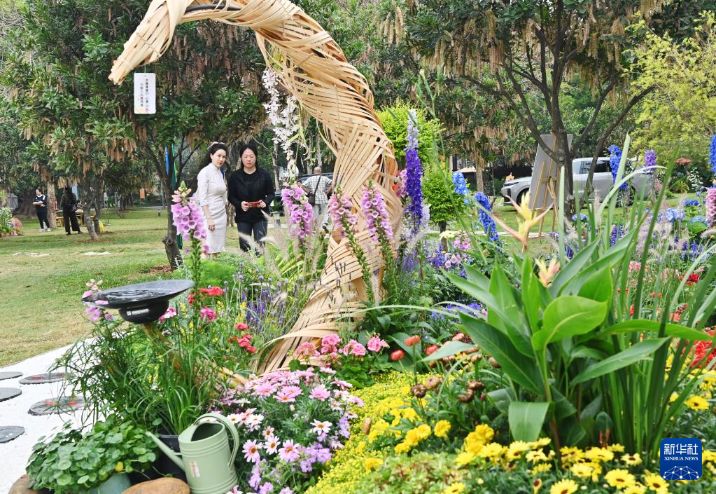 3月28日,观众在广西南宁市南湖公园参观花境作品。